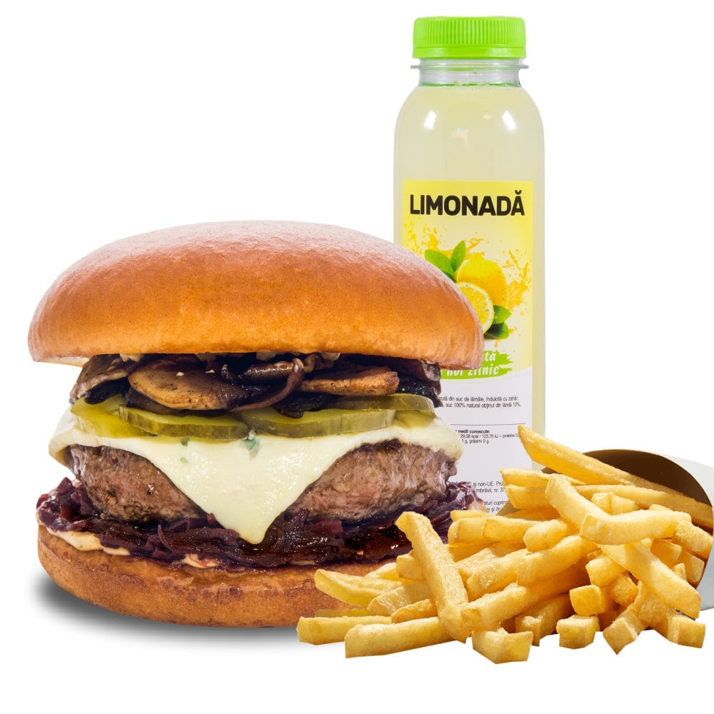430 g Ingrediente: Big Mo Burger 310 g + cartofi prajiti 120 g + băutură răcoritoare